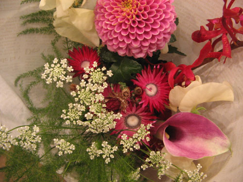 イーダのお教室はお店のお花を自分でチョイス。そうすると自然に色あわせのお勉強にもなるからね。