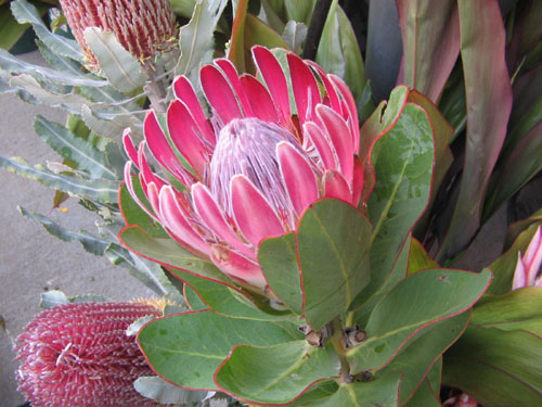 今日のは定番 キングプロテアより顔は小さいけど すごく綺麗な赤ピンクの花です。