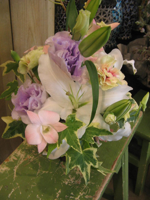 nativefloweri:daのお仏用アレンジは、洋風の菊やゆりデンファレ、カラーなどを使ってアレンジします。aya