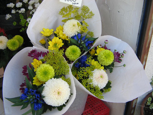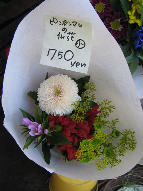 かわいいピンポンマムを使って、i:da風らしさをだいた仏花を用意してます。