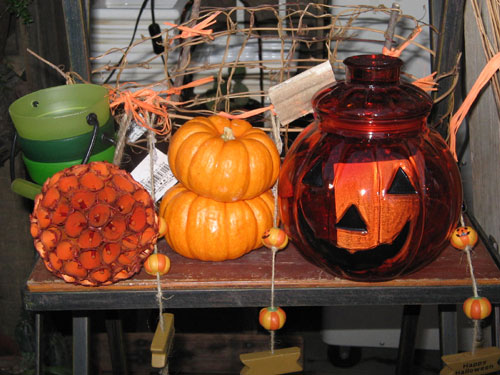 かぼちゃの形をしたガラスのビンの中にロウソクを入れて飾ったらきっとかわいいよ。