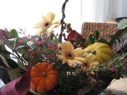 ピンクの千日紅を使ってかわいい秋のアレンジです。