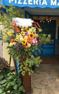 今日はピザ屋さんの開店お祝いのスタンド花!