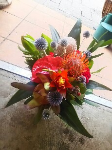 引っ越したてはなにかと忙しいので特に持ちそうなネイティブ使ったお花で夏らしくアレンジしてみました♪