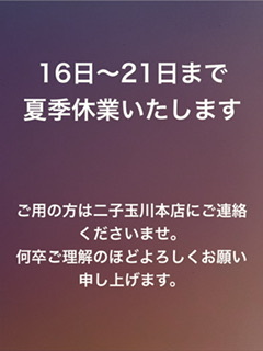 この間ご用の方は二子玉川本店までお問い合わせくださいませ。