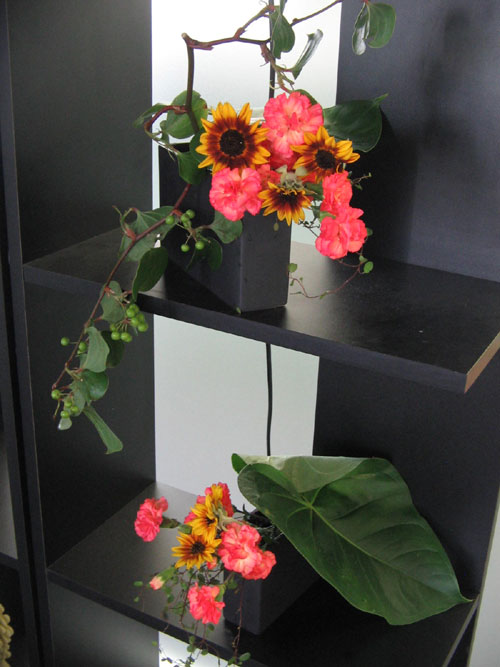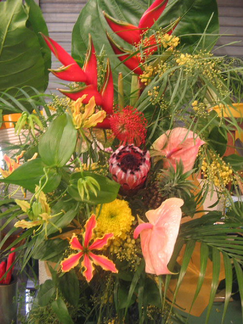 ヘルコニアかっこいい花です。真ん中はうちのシンボル プロテアの仲間です。