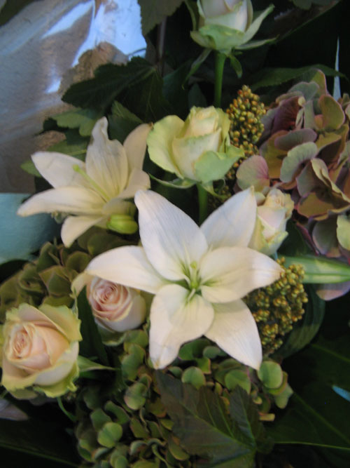 どちらにもアンティークなバラと秋色あじさいを使ってweddingのイメージで。