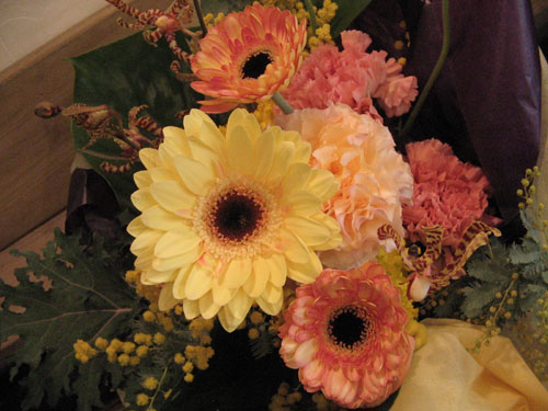 個人的にもガーベラは芯の黒いタイプが好きですが、この黄色いガーベラは芯が茶色。