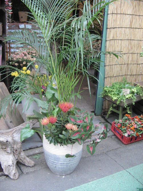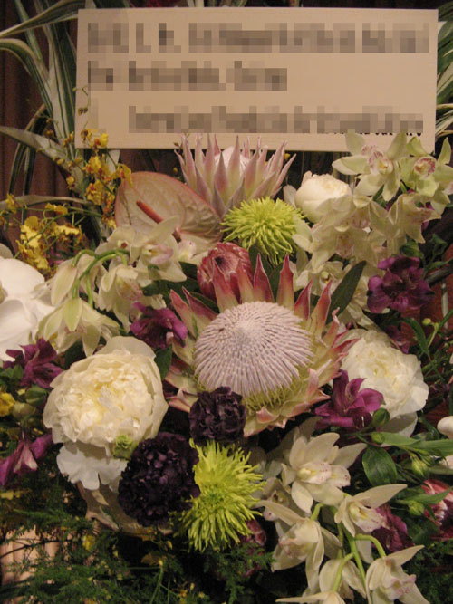 さて 今日の スタンド花 には やっぱりカッコイイ キングプロテアを使いました。(大使様への贈り物でした・・・)