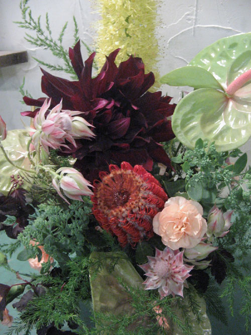 そして、その周りを取り囲んでいるセルリア・アンスリウム・エレムレス等 どれもこれも個性的な優しい色をしたお花達でした。