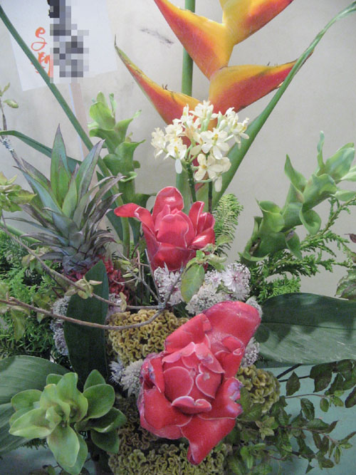 真ん中でつやつやした紅ピンク色の様なお花の名前は、ジンジャーというんです☆