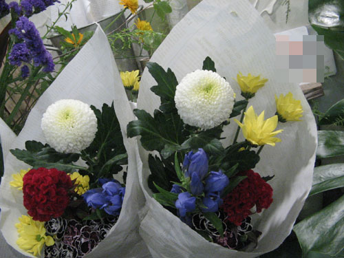 ネイティブフラワーイーダの、可愛いピンポンマムを使った仏花はいかがですか?☆