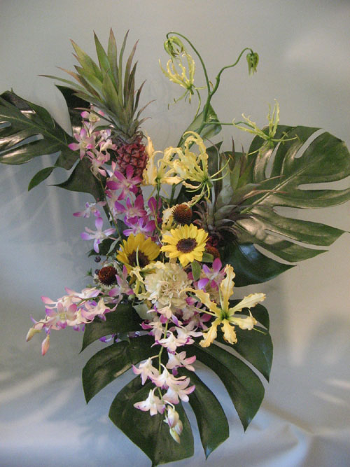 ひまわり・パイナップル・モンステラ・・夏気分のお花ばかり集めたトロピカルアレンジ♪