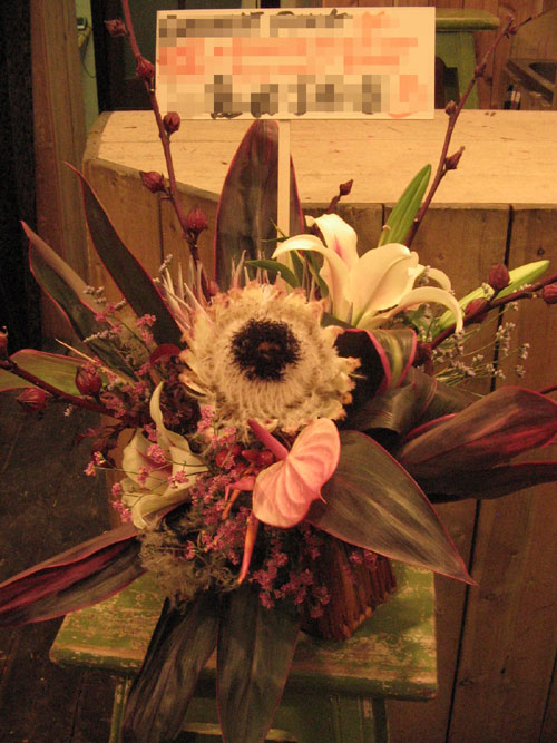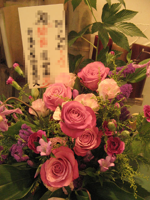 スナックの開店ということで、かわいいピンクのお花をたくさん詰めてみました♪