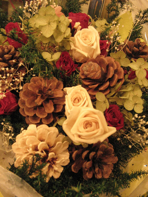 プリザーブドフラワーと木の実のアレンジ