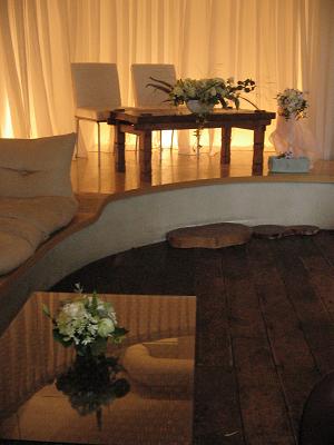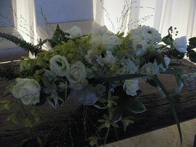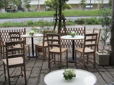 ■ テラス席には 持ち帰れるように作った小さいアレンジメントを並べました。