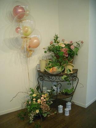 お花とグリーンで空間を作ります。