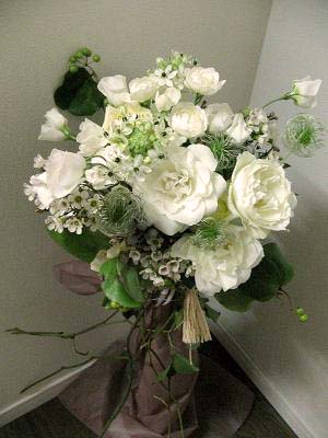 バラをメインに、花嫁の色、白いブーケです。