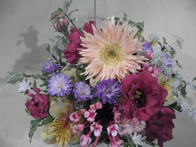 パステルカラーのガーベラをメインにして、トルコキキョウ、アルストロメリア、アスター、レースフラワーなど‥