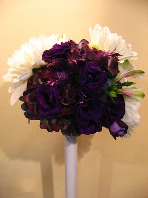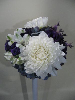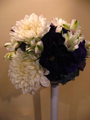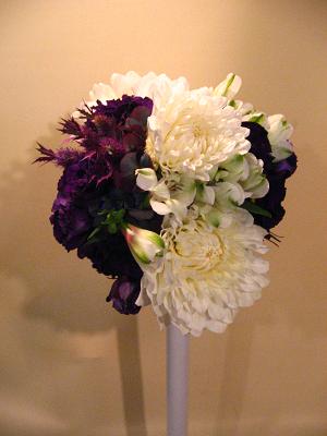 白×濃紫の、大胆なブーケになりました。