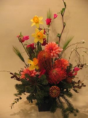 あんまり目にしない麦やオレンジ白ミックスのとっても可愛いダリア、まだつぼんでいますが…小さな白いお花を咲かせるユキヤナギなど‥
