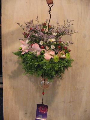 なんとも涼しげなしのぶ風鈴。アレンジメントで作ってしまいました^^