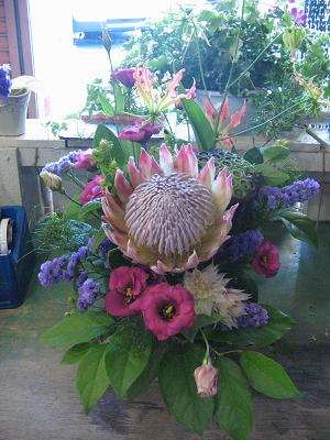 ダントツの存在感!キングプロテアをメインに、アレンジメントができました!