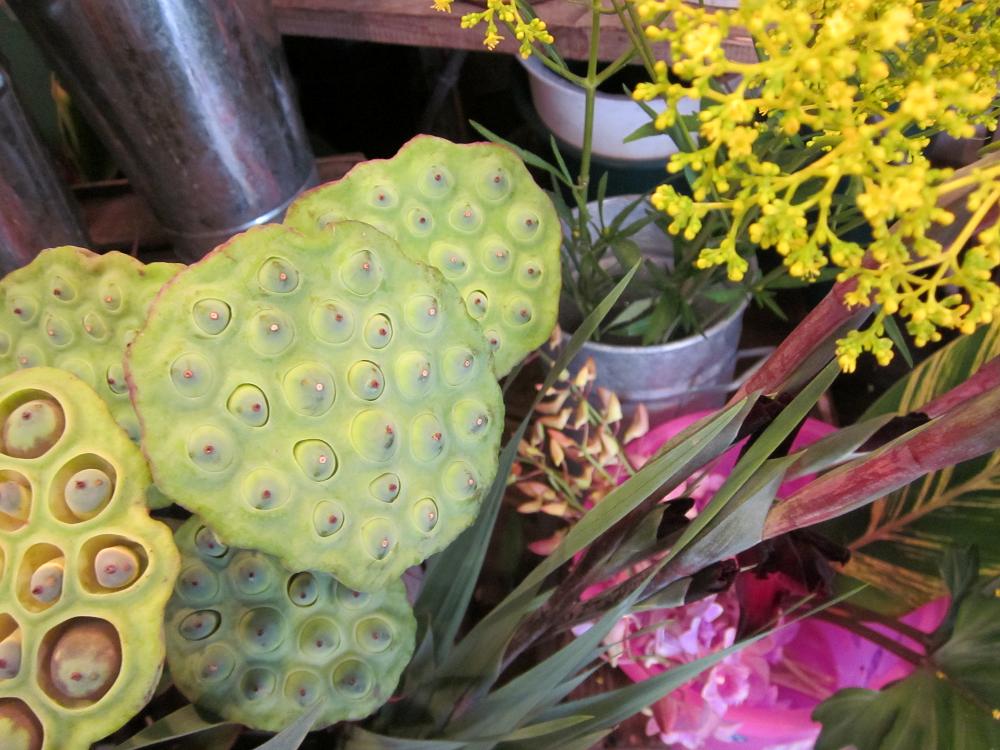 お盆に飾るお花の中でよく目にするこのお花。蓮の実です^^