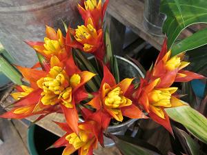 グズマニアは、赤や黄色の原色が多く南アフリカ原産地です。