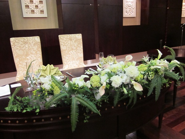 新郎新婦の席の前のアレンジメントです。