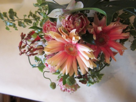 ピンクのかわいいガーベラを使ったアレンジメントです。