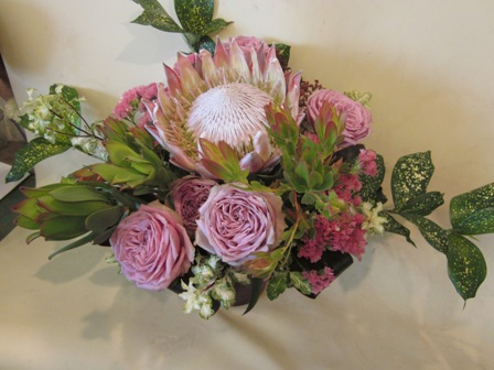キングプロテアが入ってるアレンジメントだけでも、インパクトがありますが、そこにワラタが入ってるアレンジメントなので、