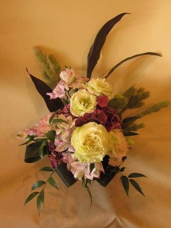 もう一つのアレンジメントは、ピンクのアジサイを使って