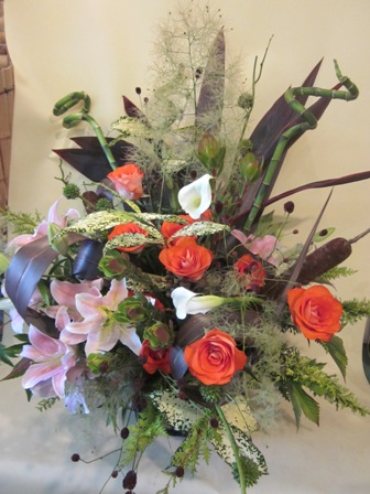 ドラセナやガマ、カラーなどいろいろな種類のお花を使っています☆