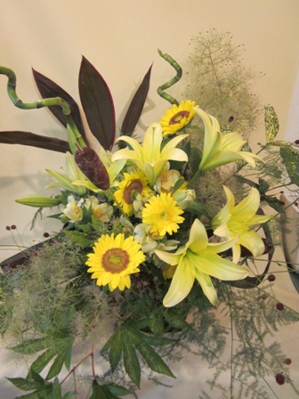ヒマワリがあって夏らしさもあります♪スパイラルバンブーが後ろにあり遊び心もありますよね☆
