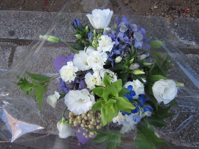 白と青のアレンジメント。