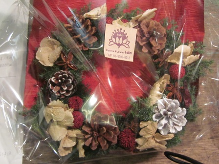 ネイティブフラワーi:daでは、オリジナルのクリスマスリースを作ってます。