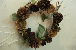 ドライのオレンジと松ぼっくりがとっても可愛いですよね!