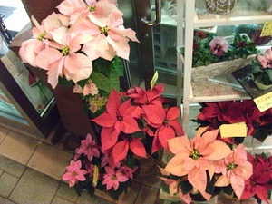 写真はお店にいるポインセチアさんたちです。