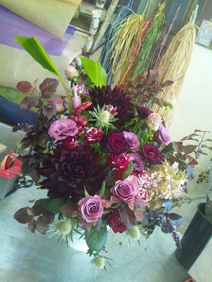 季節は秋なので秋っぽい色合いのアレンジメントですね^^