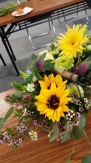 今日は昨日に引き続き ひまわりメインの花瓶花です★