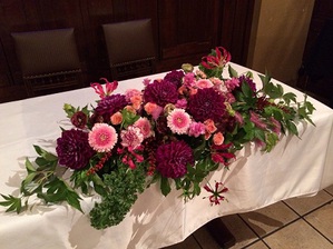 今日はウェディングで新郎新婦の前に飾られる
