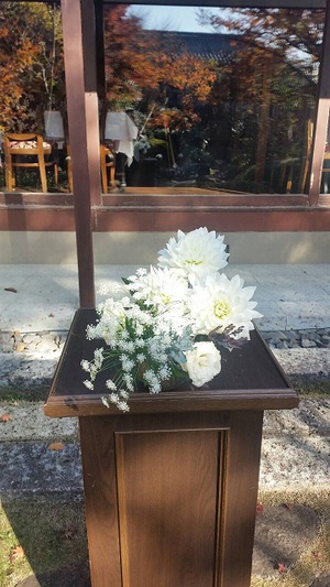 お花とグリーンで空間を作ります。