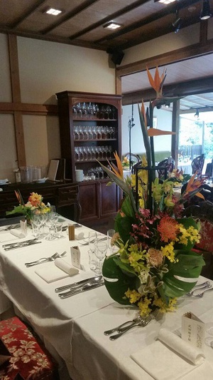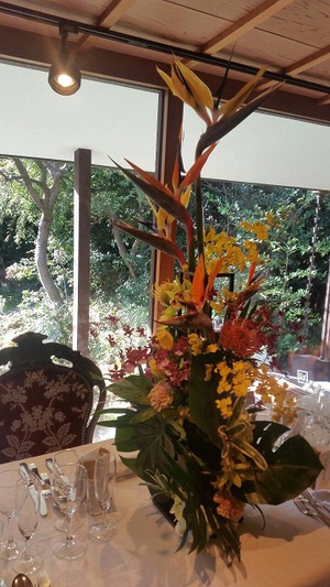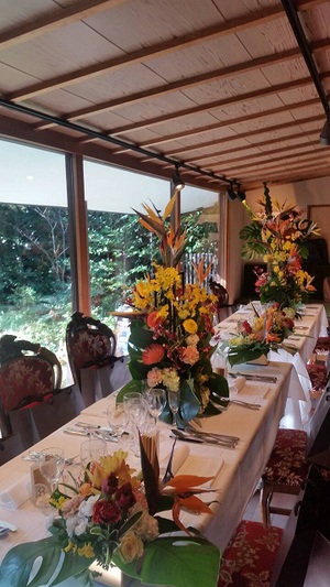 テーブルアレンジは小さめのものとまるでタワーのような2種類が
